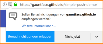 Seit Version 44 kann Firefox auch Benachrichtigungen von Websites anzeigen, die nicht geladen sind. Wenn die Push API (ein W3C-Standard) genutzt wird, empfängt Firefox die Nachrichten und kann sie (mit Erlaubnis des Nutzers) jederzeit auf dem Desktop anzeigen. Websites können die Push-Benachrichtigungen auch im Hintergrund aktualisieren, ohne dass eine Benachrichtigung angezeigt wird. Wenn Sie einer Website bereits Ihr Einverständnis zum Senden von Benachrichtigungen gegeben haben, kann diese Seite ebenfalls die Push API nutzen. Mit folgenden Schritten erteilen oder entziehen Sie einer bestimmten Website die Erlaubnis: